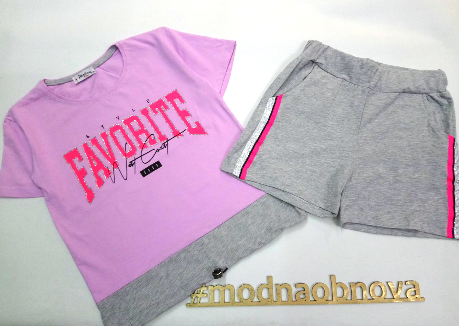 Стильний , літній комплект з шортами подсолнухи блакитний
