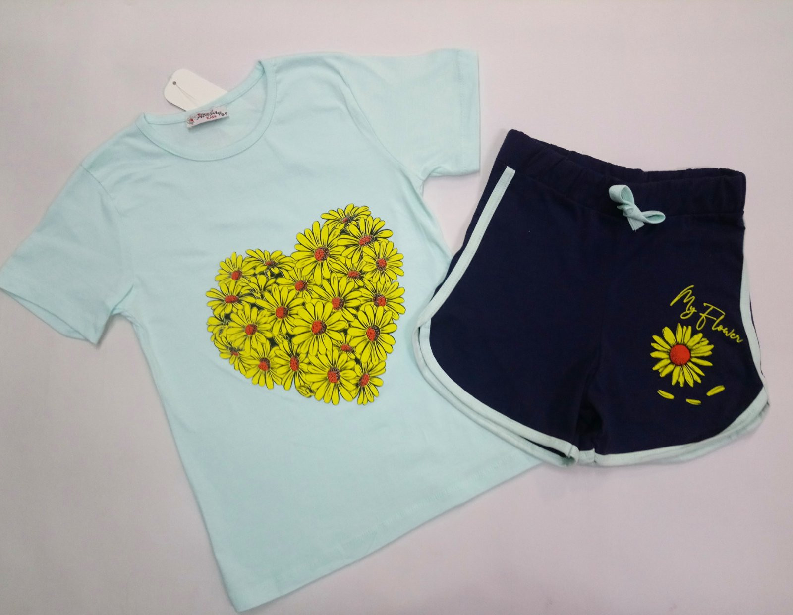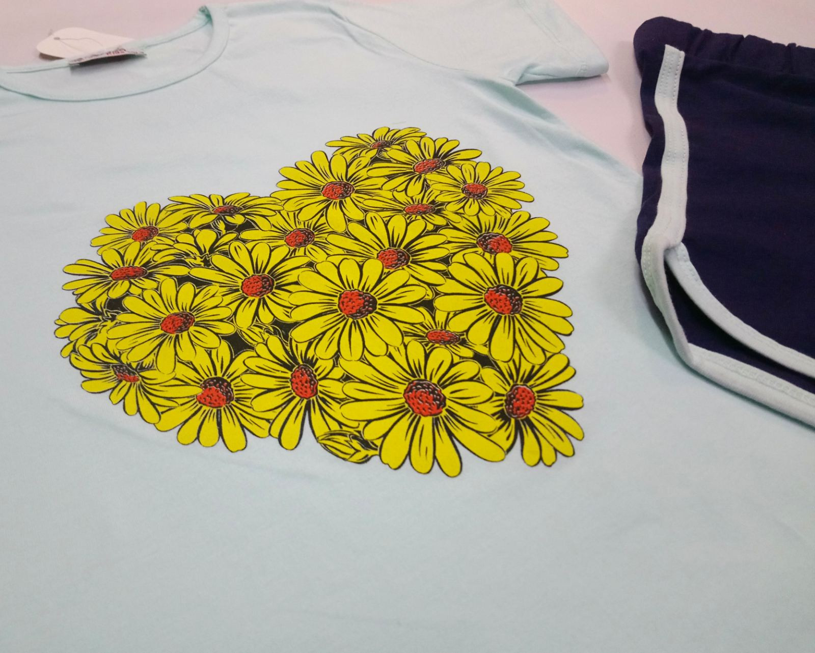 Стильний , літній комплект з шортами подсолнухи блакитний
