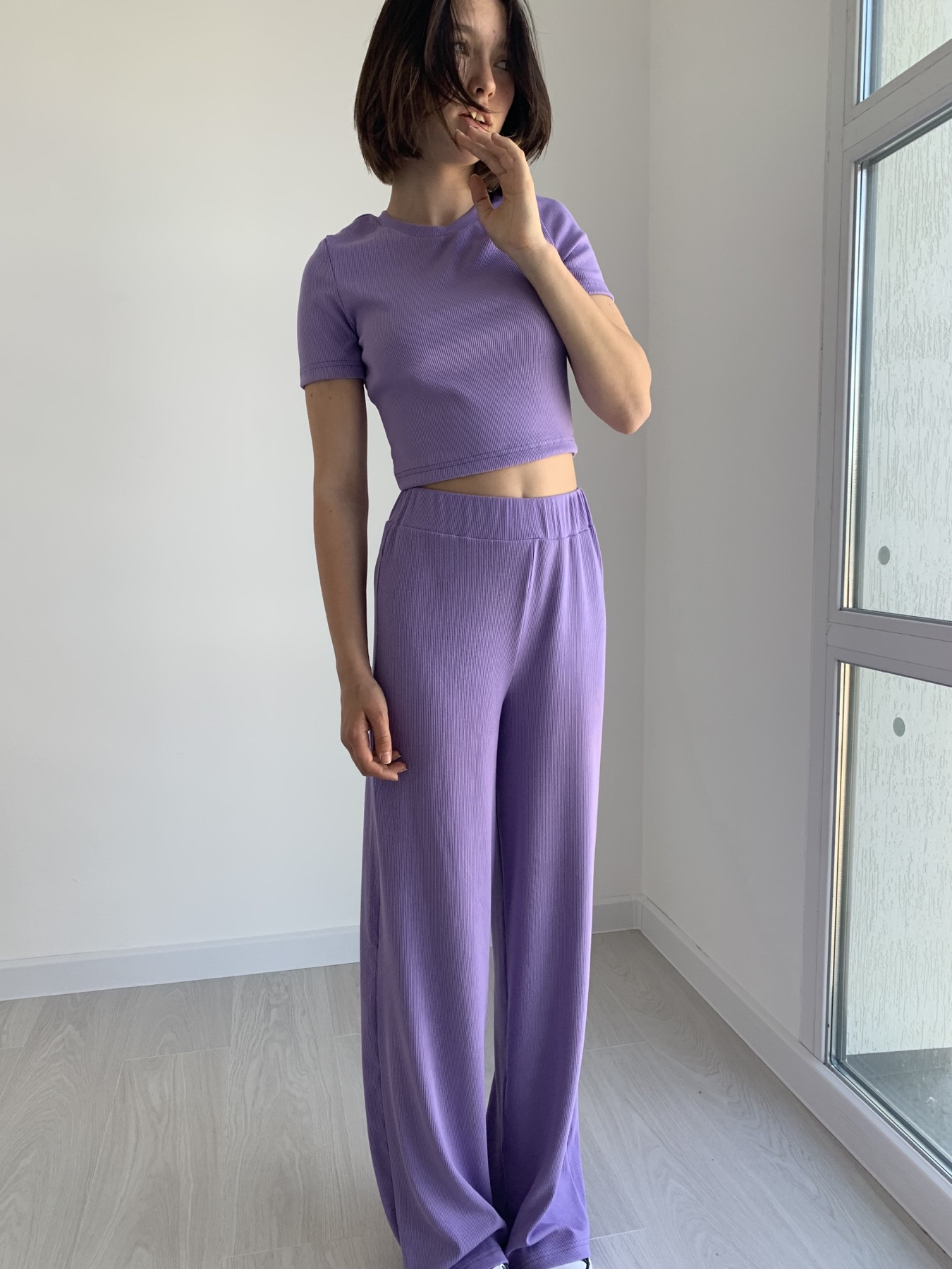 Костюм Рубчик Підліток лаванда Заміри Палаццо 140 Талія 58 Довжина 87 Шаговий 63 146 Талія 60 Довжина 90 Шаговий 66 152 Талія 62 Довжина 94 Шаговий 69 158 Талія 64 Довжина 98 Шаговий 72 164 Талія 66 Довжина 102 Шаговий 75 КропТоп 140 Довжина (від верху горловини до низу виробу) 35 Ширина(середина) 63 146 Довжина (від верху горловини до низу виробу) 37 Ширина(середина) 68 152 Довжина (від верху горловини до низу виробу) 39 Ширина(середина) 72 158 Довжина(від верху горловини до низу виробу) 41 Ширина(середина) 74 164 Довжина(від верху горловини до низу виробу) 43 Ширина(середина) 78