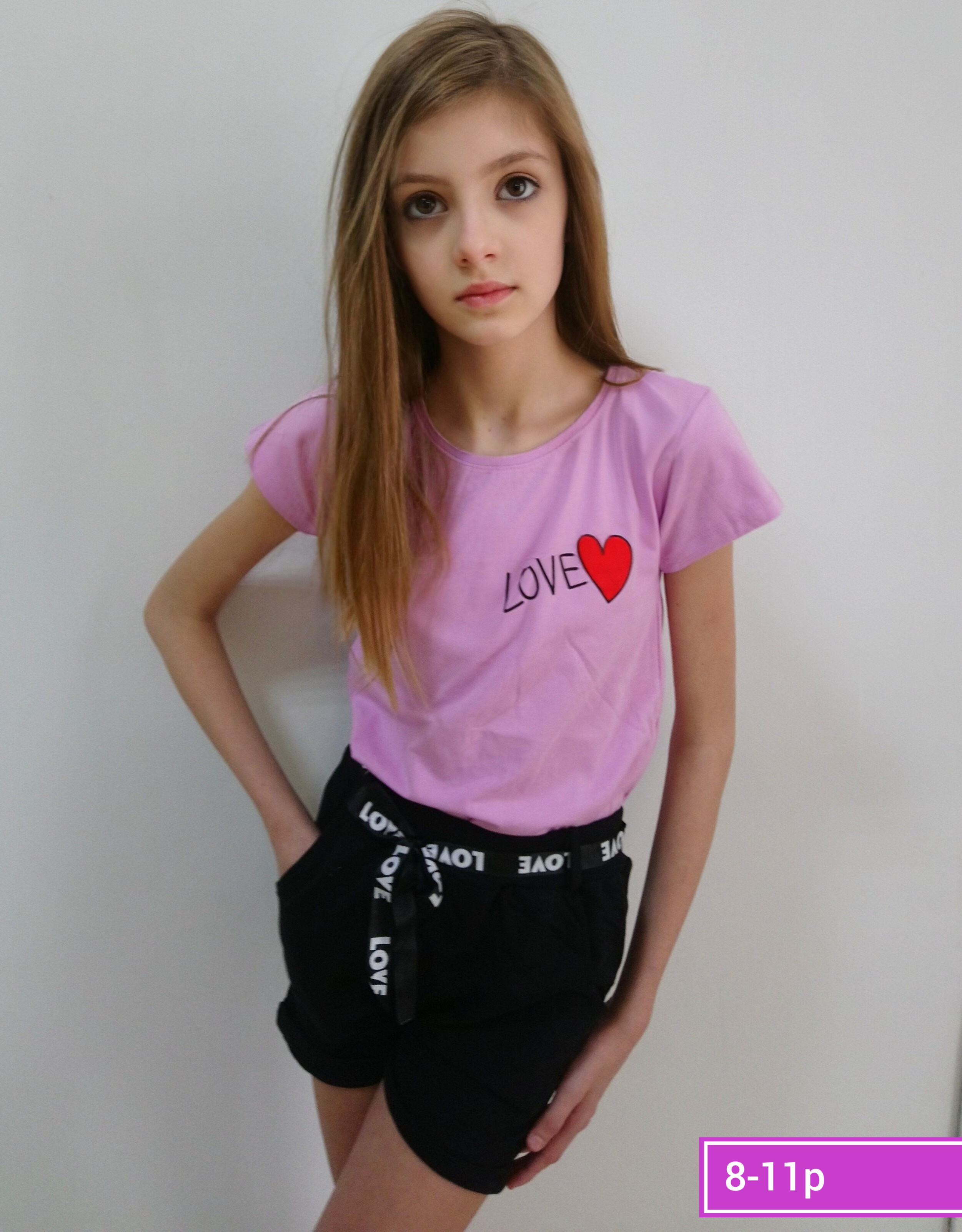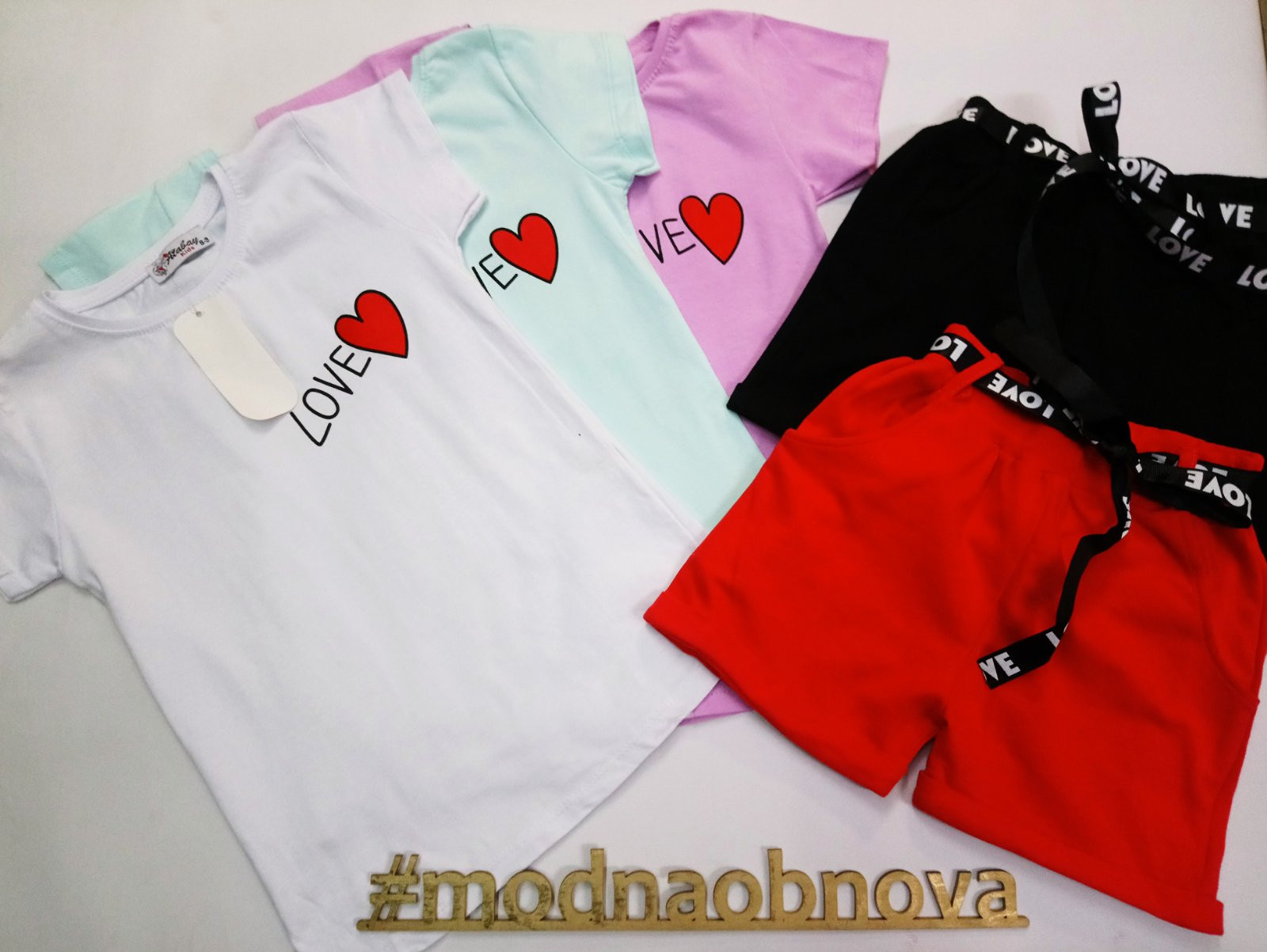 Костюмчики з шортаии. Туреччина Тканина Cotton Шорти на резинці,, декоративний пасочок. Має кишені Малюнок накат Розміри 8-9 9-10 10-11 11-12