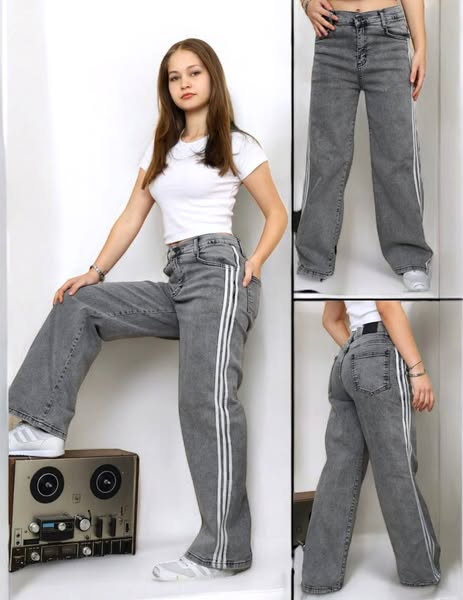 Стильні джинси лампас 134-170 Туреччина Фабрична Туреччина є внутр утяжка , куліска Розміри 134-170 заміри 134 Довжина 82 Пот 27 140 Довжина 86 Пот28 152 Довжина 95 Пот30 158 Довжина 97,5 Пот32 164 Довжина 101 Пот33 170 довжина 104 Пот 34
